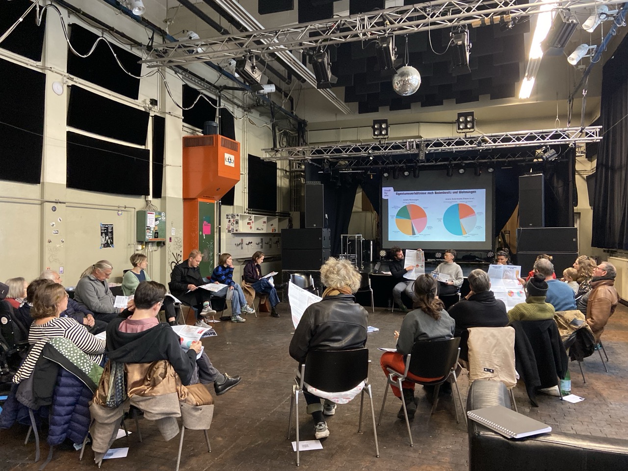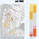 In a third step, we discussed how to present our information in a readable and visually appealing format. We decided on a poster format, that can be folded into a neat small A5-leaflet. This would include colorful maps and visualized statistics, for example about the ten biggest housing owners in the neighborhood and historical changes in housing ownership since the 1960s. Hence, each poster would look different, and we benefited every time from the input of a different designer who worked or lived in the respective neighborhood.